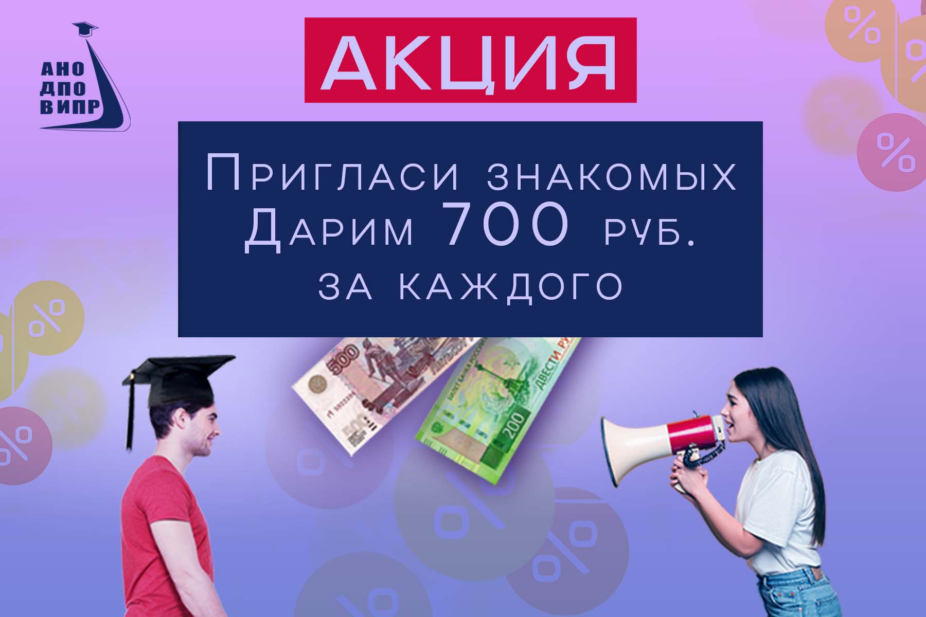 Акция от АНО ДПО ВИПР «Пригласите коллег или знакомых и получите по 700 руб. за каждого»