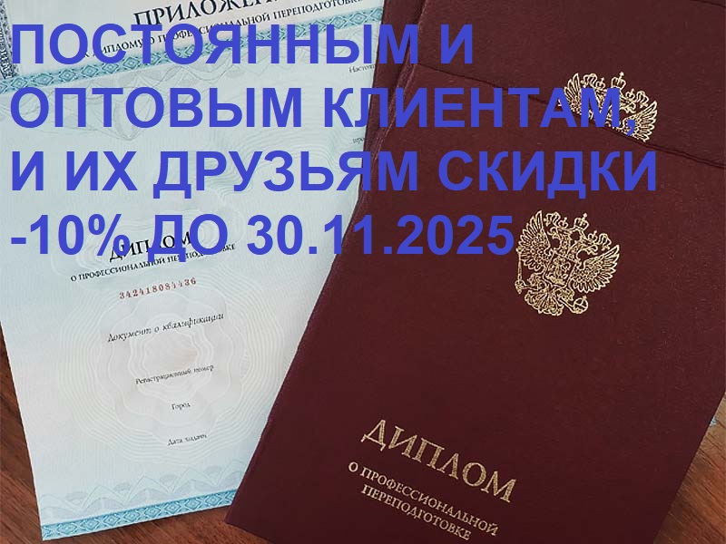 ПОСТОЯННЫМ И ОПТОВЫМ КЛИЕНТАМ, И ИХ ДРУЗЬЯМ СКИДКИ -10% НА ПЕРЕПОДГОТОВКУ (ПП) И ПОВЫШЕНИЕ КВАЛИФИКАЦИИ (КПК) ДО 30.11.2025.
